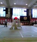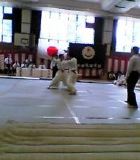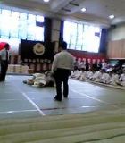 一回戦の相手は立教大学の川上真司君という阿波と同じくらいの体型の相手でした。相手の得意技は逆抱腰車で、開始30秒くらいで技有を取られました。しかし、その後巻き返し二度目の逆抱は外させ、更に三度目で見事下返腕挫を決めました。ところが、主審の「待て」の合図が阿波が決める前にかかっていたとされ、下返は無効となりました。その後、左胴で技有を取りましたが、判定負けを喫しました。