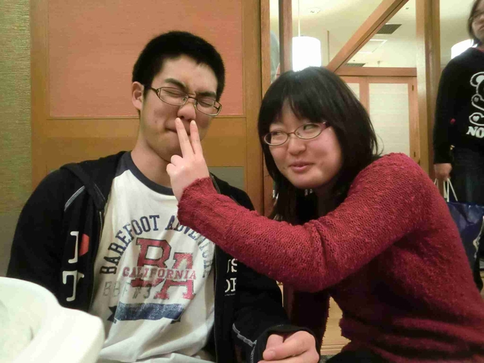 ■ついに飲み会でーす。お通しのじゃがいもをつまむ前田■