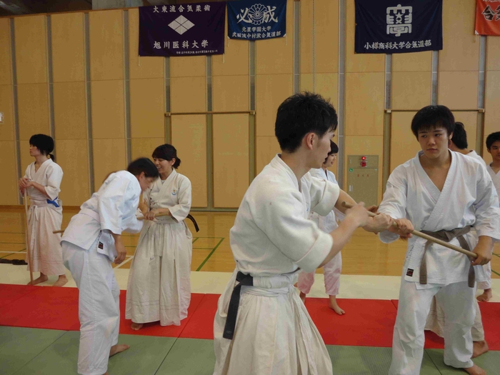 ■今回は北大・北星・札学の武田流合同で杖道の技の体験コーナーもありました■