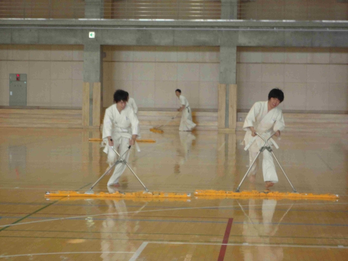 ■お片付け。モップにはしゃぐ男子たち■