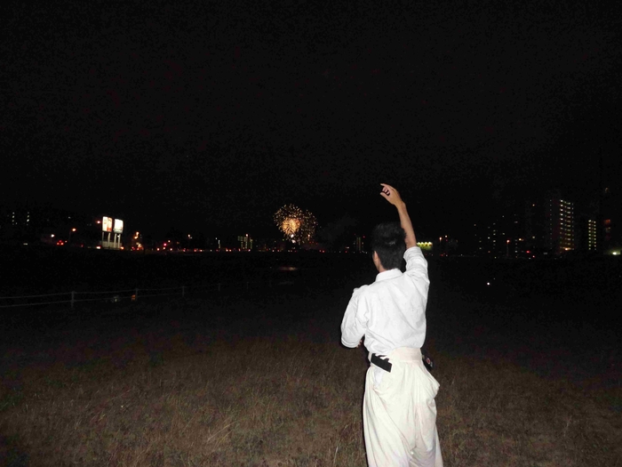 ■花火、遠っ!通りで人が少ないわけです■