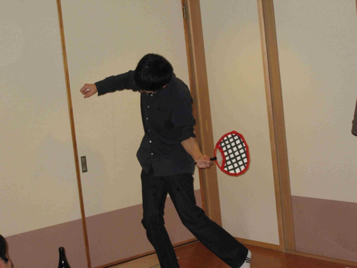 ■全日本大会の罰ゲーム。Σさんの渾身のスマッシュ■